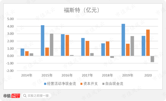不过,福斯特部分年份的资本开支较高,自由现金流分别2018在年、2020年表现为流出。