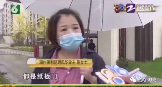 据浙江卫视《1818黄金眼报道》,整个明玥风华小区精装修房的交付标准与与合同条款不符,合同所标注木门实际均为纸门。