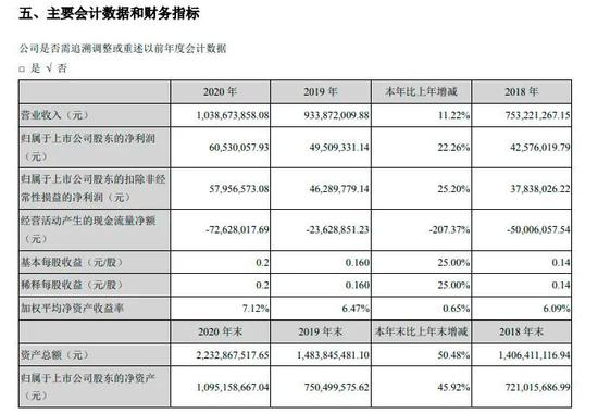 虽然未满足相关条件而取消“10转10”高送转方案,但科蓝软件2020年业绩还算不错。公司26日晚披露的2020年年报显示,公司2020年实现净利润6053万元,同比增长22.6%;实现扣非后净利润5795.66万元,同比增长25.2%。