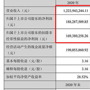 不过,据界面新闻记者发现,在这份176页的年报里,海象新材财务数据存在互相“打架”的情况,主要为公司报表中显示的扣非后归母净利润一开始约为1.69亿元,但在之后表述中却变成“169380.26万元”。显然这是海象新材财务人员将数据单位弄错造成的尴尬。