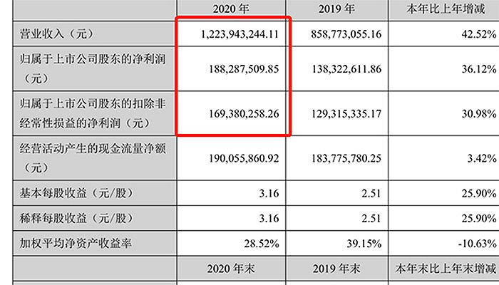 去年9月刚刚上市的海象新材(003011.SZ),近日向资本市场“秀出”过去一年的经营业绩。财报显示,2020年公司实现营收12.23亿元,同比增长42.52%;扣除非经常性损益的净利润1.69亿元,同比增长30.98%。