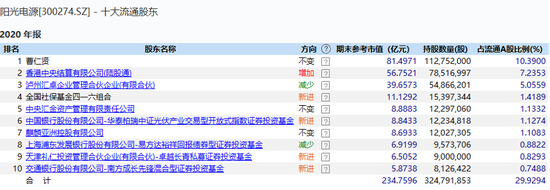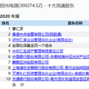 事实上,高瓴资本旗下人民币私募证券基金管理平台礼仁投资已提前入股阳光电源。根据阳光电源2020年年报披露的前十大股东明细显示,礼仁投资持有阳光电源900万股,位列第9大股东席位。