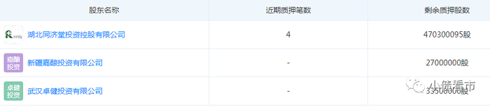 一方面,张美华夫妇通过高比例质押股权融资。截至2020年3月末同济堂控股直接持有同济堂33.14%的股份、通过一致行动人武汉卓健和新疆嘉酿合计持有43.38%的股份,三方股东所持公司股份质押比例分别为100%、24.46%和100%。