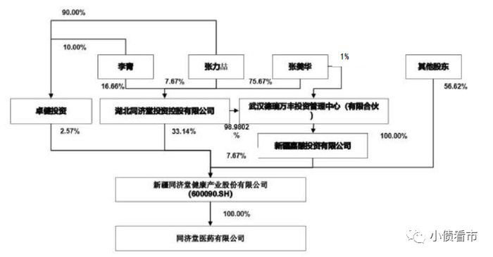 从股权结构看,同济堂医药是同济堂全资控股子公司,公司实际控制人为张美华、李青夫妇。