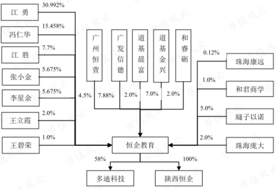 江勇直接持有恒企教育的30.99%股权,为实际控制人;江胜为江勇的一致行动人,持有恒企教育的7.7%股权。