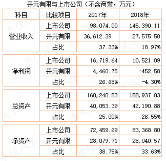 显然,不管是从营收、利润,还是从资产看,开元有限都占上市公司相当比重。