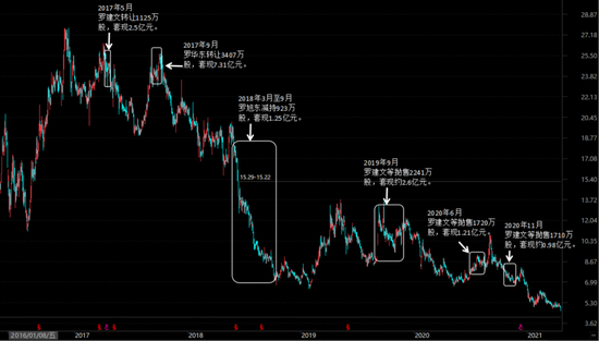 据不完全统计,自2017年以来罗氏家族累计减持套现达17.8亿元,所套现金额超过2021年一季度末上市公司总市值。