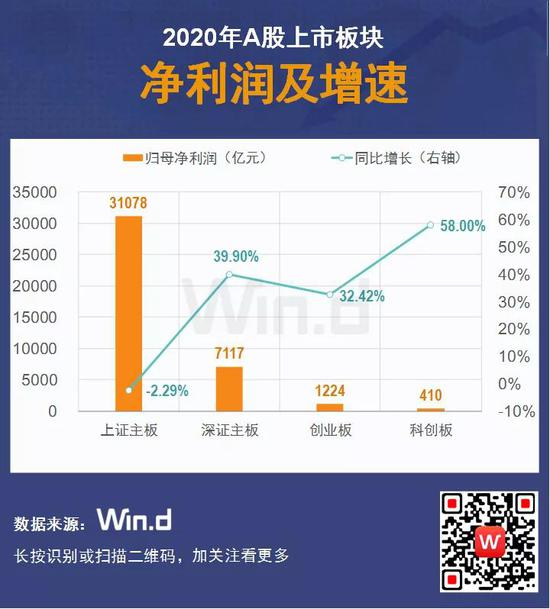 在医药、半导体公司业绩的带动下,2020年科创板归母净利合计同比增速为58%,高于深证主板39.90%的增速及创业板32.42%的增速。