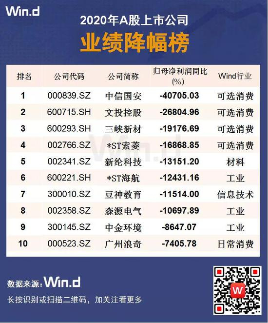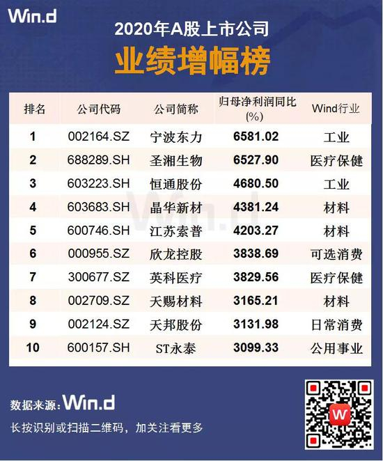 A股2020年业绩大数据榜单:业绩增长TOP10出炉