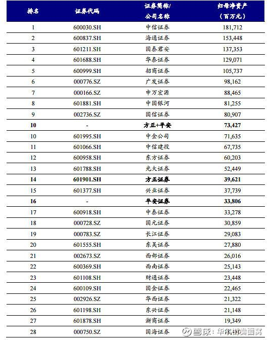 再看下图,如果方正证券与平安证券整合,排名将上升至第十名。