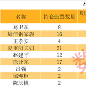 有着期货大神之称的葛卫东,持股市值超过118亿元位居首位。另外,周信钢家族、王孝安、夏重阳夫妇、赵建平、徐开东等,持仓市值均超过5亿元。ST大王陈庆桃持仓市值最低,仅5000万元左右。