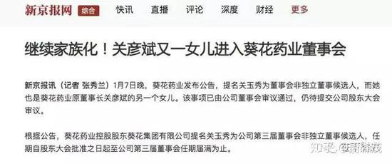 2019年2月1日,葵花药业再发公告,葵花药业董事会于1月31日审议通过相关议案,选举关玉秀为公司第三届董事会董事长,选举关一为第三届董事会战略委员会委员,并担任董事会战略委员会召集人。