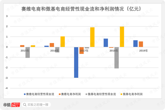 如果结合曾在新三板上市的赛维电商和傲基电商的情况分析,会发现2家公司在这4-5年合计经营性现金流净额均出现净流出,基本不及净利润,其中傲基电商年年盈利,但经营性现金流净额年年负数,和跨境通的情况很像。