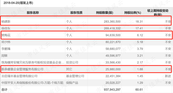 在经历多次大笔定向增发计划后,杨建新夫妇的股权被大量稀释。截止2018年4月,杨建新夫妇合计仅持有25.93%股权,而徐佳东的持股比例上升至17.41%。