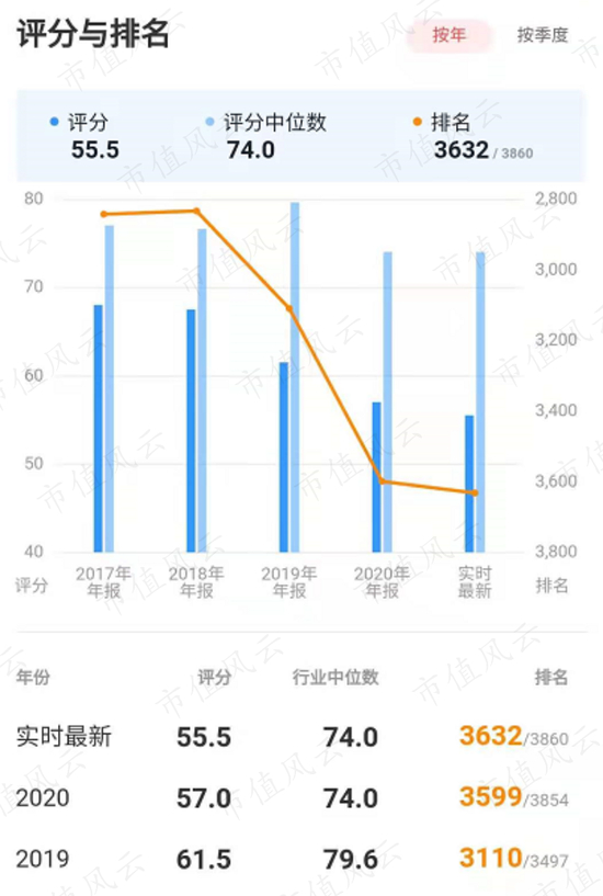 其实,冰冻三尺非一日之寒,“吾股大数据”连续三年的系统评分和全市场排名,早已揭示它的“金玉其外,败絮其中”。