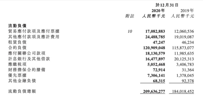 2020年,中梁控股剔除预收款项后的资产负债率降到了79.9%,但流动负债仍高达2096.36亿元,且踩了“红线”。