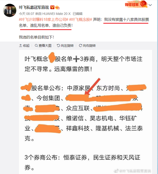 也因此有人借此恶意散布谣言,将未被叶飞点名的上市公司造谣为叶飞公布的18家上市之一。