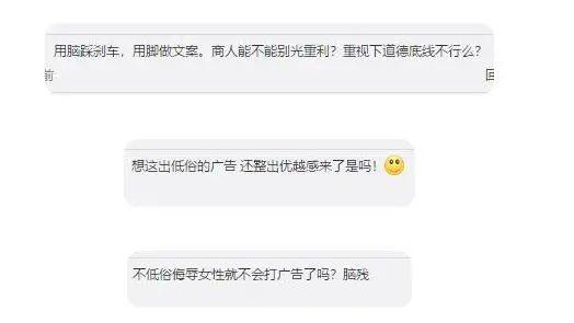 该微博发布后引起网友争议,不少网友评论:“重视下道德底线不行么?”“故意博眼球吗”“不低俗侮辱女性就不会打广告了吗?”。