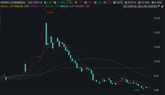 2015年,借着影视概念火热的东风,欢瑞世纪作价30亿元成功借壳星美联合登陆A股市场。股价上,更曾一度达到23.86元/股。