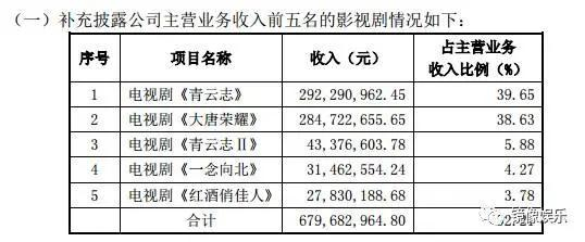 事实上,欢瑞彼时在恢复深交所的问询函时,曾披露《青云志》这部剧给欢瑞世纪带来了2.9亿的营收,占当年主营业务收入的40%。