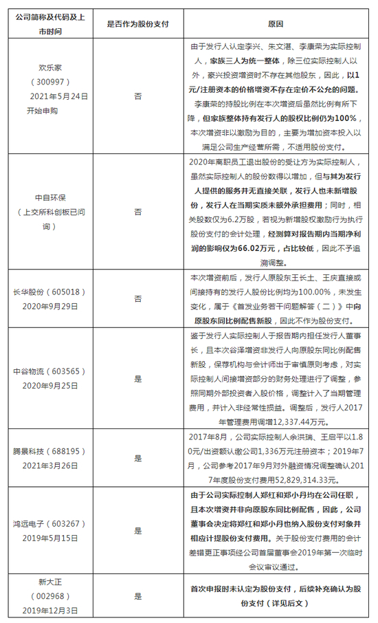 “通常情况下,解决股份代持等规范措施导致股份变动,家族内部财产分割、继承、赠与等非交易行为导致股权变动,资产重组、业务并购、持股方式转换、向老股东同比例配售新股等导致股权变动等,在有充分证据支持相关股份获取与发行人获得其服务无关的情况下,一般无需作为股份支付处理。”