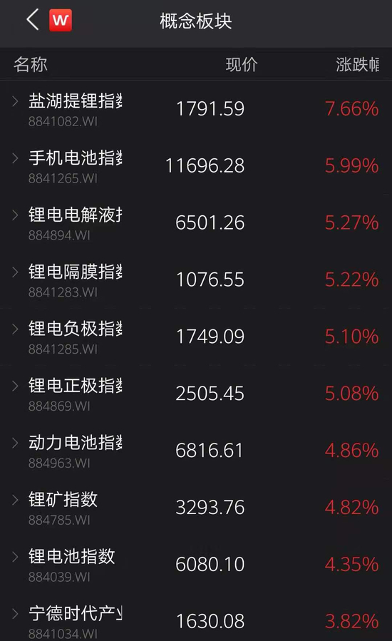 此外,部分券商研究对新能源汽车上游原材料锂、钴概念继续看好。
