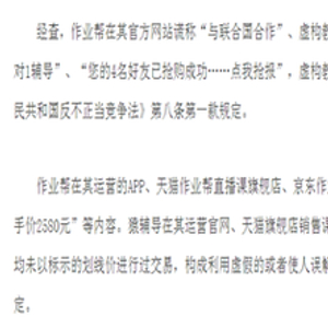 8天前的5月10日,北京市市场监管局对知名在线教育公司作业帮和猿辅导处以警告和250万元顶格罚款的行政处罚。