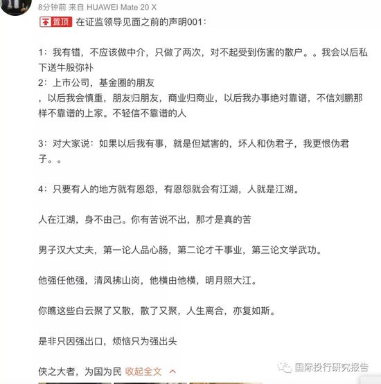 3:对大家说:如果以后我有事,就是但斌害的,坏人和伪君子,我更恨伪君子。。