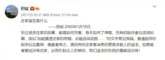 但斌还表示,自己在《时间的玫瑰》里“庄家背后是什么”一文中写的很清楚,坐庄死路一条,也不可能成功!投资还是要坚持价值投资,走康庄大道!他把赚钱称之为“大智慧”。