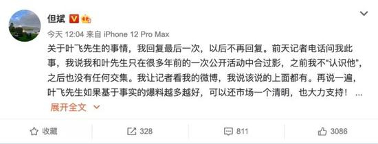 但斌通过微博喊话叶飞称: