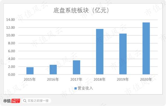 2020年,底盘业务实现营业收入13.31亿元,在经历2019年的下滑之后,恢复增长。