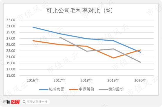 对比来看,拓普集团的营收规模在三家公司中是最高的,其余两家公司2020年的收入均不足30亿元,且都出现不同程度的下滑。