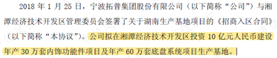 2018年1月,拓普集团还与湘潭开发区管委会签署了投资意向协议,拟投资10亿元,建设“年产30万套内饰功能件项目”及“年产60万套底盘系统项目”生产基地。此次募投项目中的湖南工厂部分,大概就是依托这一投资协议。