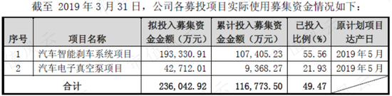 时间是2017年5月,方式是非公开发行,募资规模为23.95亿元,主要用于汽车智能刹车系统、汽车电子真空泵两个项目。