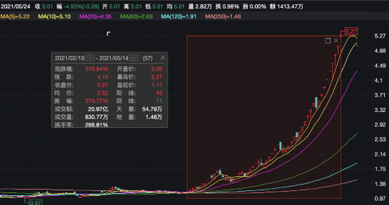这只市场热点股,停牌核查前曾在20个交易日内实现18个涨停。若从2月18日开始计算,该股在57个交易日累计暴涨超370%。若拉长时间来看,从2020年6月的低点至今,*ST节能股价已经飙升超5倍,成为市场中不折不扣的焦点股。