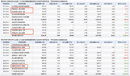 而这样类似的操作还发生在安信证券大连五一路、华泰合肥创新大道、国联证券苏州三香路等多则席位。
