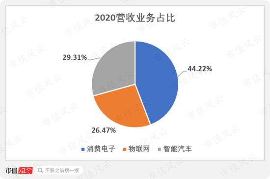 消费电子业务一直是公司的主要收入来源,而物联网和智能汽车在上市后才开始大规模发展,仅过了5年就能贡献约56%的收入。