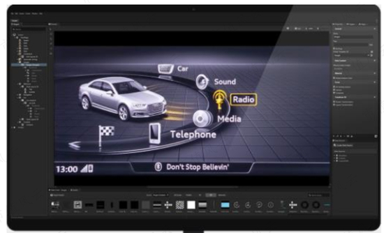 Kanzi系列产品是汽车用户界面设计工具,主要面向汽车工业,比较常见的有数字仪表盘,信息娱乐系统和抬头显示系统等。
