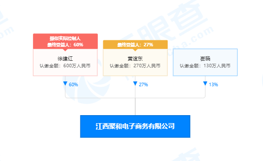 并且,江西聚和二股东黄谊东还在本次拟收购的江西聚优美电子商务有限公司(简称“江西聚优美”)、江西美之妙电子商务有限公司(简称“江西美之妙”)、江西合和实业有限公司担任股东。而其大股东徐建红也在江西聚优美、江西美之妙担任股东(如下图)。