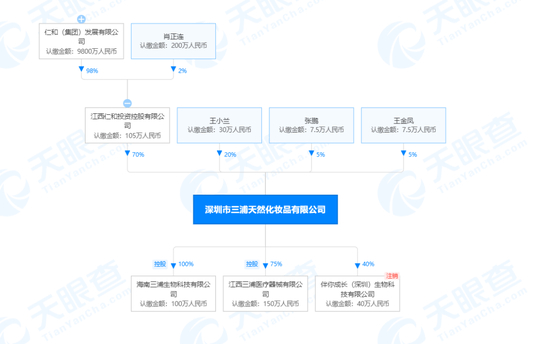 在公司今日公布的标的中,也出现了一些与公司有关联的企业。其中,深圳市三浦天然化妆品有限公司(简称“三浦化妆品”)为仁和药业控股股东仁和集团控股的孙公司。天眼查资料显示,透过江西仁和投资控股有限公司,仁和(集团)发展有限公司持股98%,肖正连持股2%。
