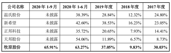 第二条远高于同行业的毛利率。牧原股份2020年毛利率61%,同业的温氏股份养猪业务31%、新希望23%、正邦科技27%,其他几家的毛利率均是养猪业务,不是综合毛利率。