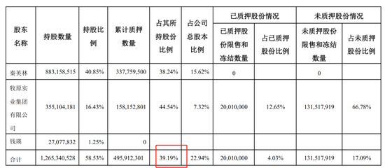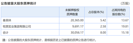 第一条实控人质押比例高,这一点很好理解,质押是获取资金,质押越多越缺钱。截至目前,牧原股份未解除的质押3亿股,占其持股比例15%,占牧原股份的总股本8%。