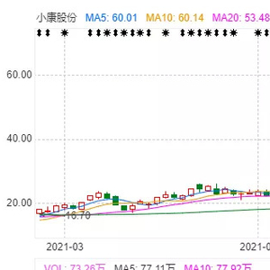 暴涨的除了销量,还有小康股份的股价。今年四月以来,小康股份从22元涨到最高69元。