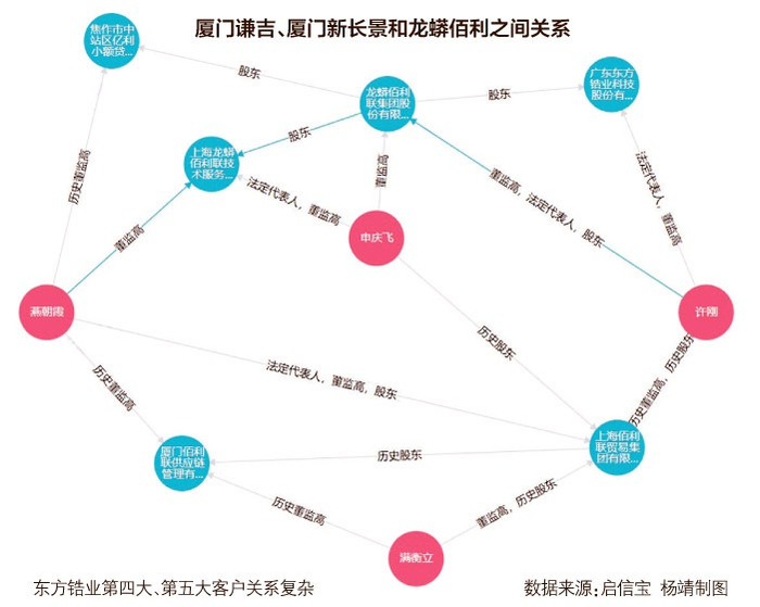 记者调查发现,东方锆业2020年第四大、第五大客户,即厦门谦吉与厦门新长景都隐隐指向了东方锆业的控股股东龙蟒佰利。厦门谦吉成立于2019年11月19日,但2020年便迅速成为东方锆业的年度第四大客户。东方锆业向其销售的金额为3429万元,占年度销售总额比例为4.47%;相同的路数也发生在厦门新长景这家公司身上,其成立于2019年12月6日,随后于2020年位列东方锆业2020年度第五大客户。东方锆业向其销售的金额为3226万元,占年度销售总额比例为4.20%。
