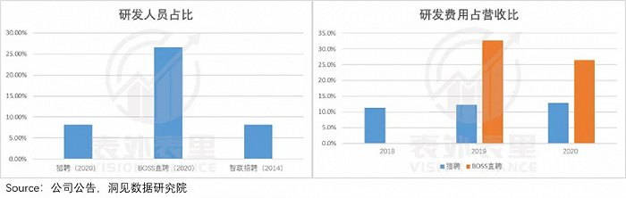 一般来说,这样的方式要真正发挥作用,非常依赖匹配的精准度,少不了重投入。如下图,BOSS直聘在技术上的投入要远高于同行。