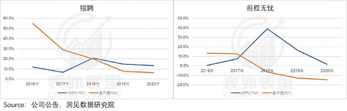 相比之下,目前的前程无忧和猎聘,其收入增长已经走过了增量驱动阶段,而转变为提价驱动。