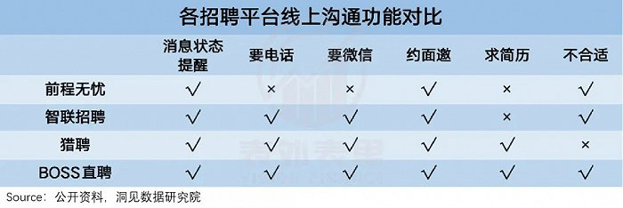 看到直聘的潜力,前程无忧、智联招聘、猎聘等平台的确也在后期增加了直聊功能,但呈现效果参差不齐。