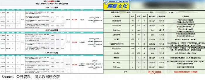 招聘网站的收入大多来源于对B端企业主的收费,比如发布职位需要购买服务。目前,智联、前程无忧均会采用年费套餐方式进行销售。