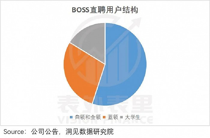 拆解BOSS直聘C端用户结构可知,目前55%的用户为白领和金领(白领为主),是用户规模的主要拉动因子。