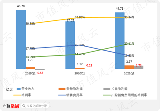 这是重组完成后首次依靠经营活动取体面的净利润。扣除销售费用后的毛利率达20.11%。